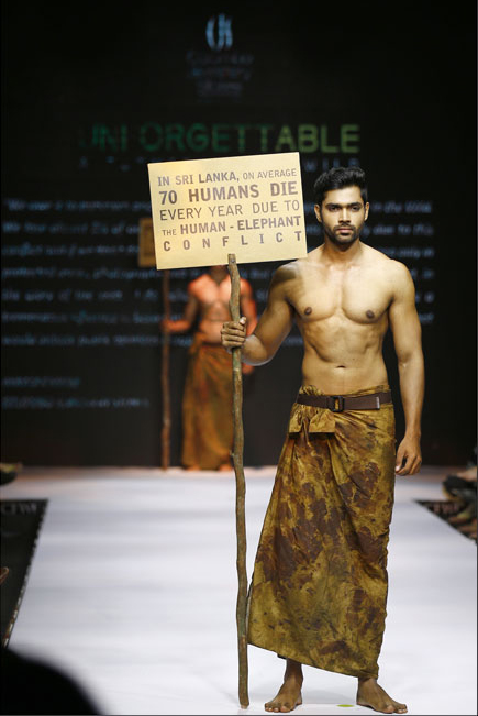 The catwalk at the 2015 edition of Colombo Fashion Week became a platform for the voiceless in the wild, as CJS unveiled its campaign and collection ‘Unforgettable – A future in the wild’. The portrayal and messaging carried out by CJS drew the attention of the audience and media, to the growing plight faced by elephants in Sri Lanka.