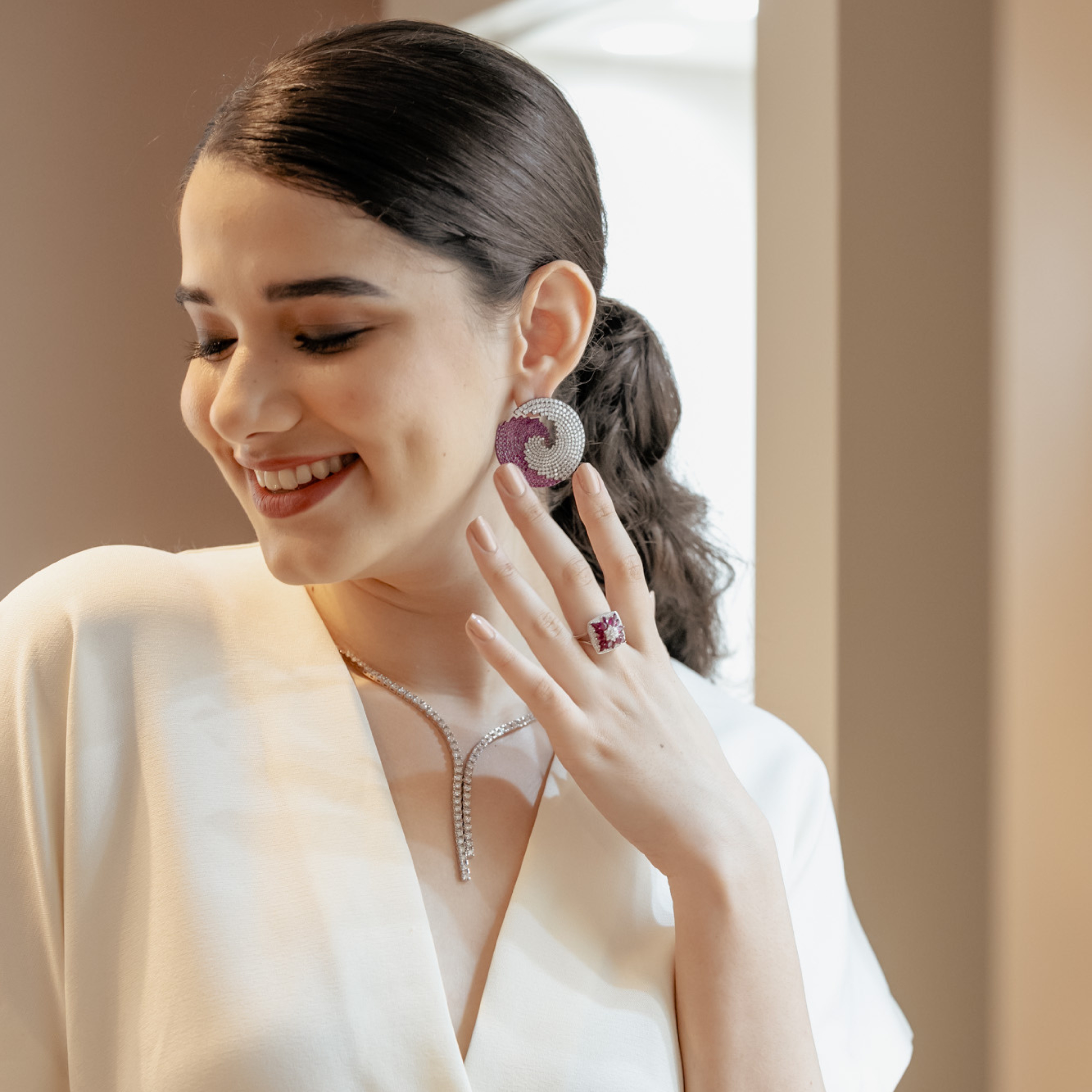 CJS at Facets Jewellery Pavilion 2024 ; our youth ambassador, Sade Greenwood, brought a unique charm to the showcase. The focus was on our Blue Sapphire, Ruby, and Emerald Jewellery collections, each piece embodying a narrative of elegance. Visitors enjoyed a diverse array of colours from radiant blues and fiery reds to lush emeralds, diamonds, and pearls CJS at Facets not only unveiled our collections but marked the beginning of a promising journey ahead for 2024.